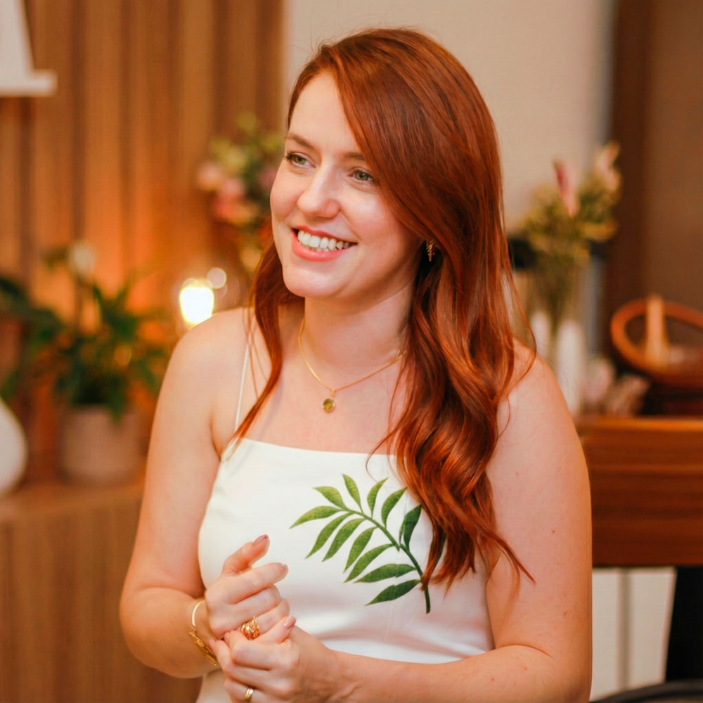 Eu sou a Carla Visintini, designer e artesã por trás de cada biojoia. Meu trabalho nasce do olhar atento para a natureza e do desejo de transformar o que é delicado e passageiro em algo que permanece — uma joia com história, significado e presença.